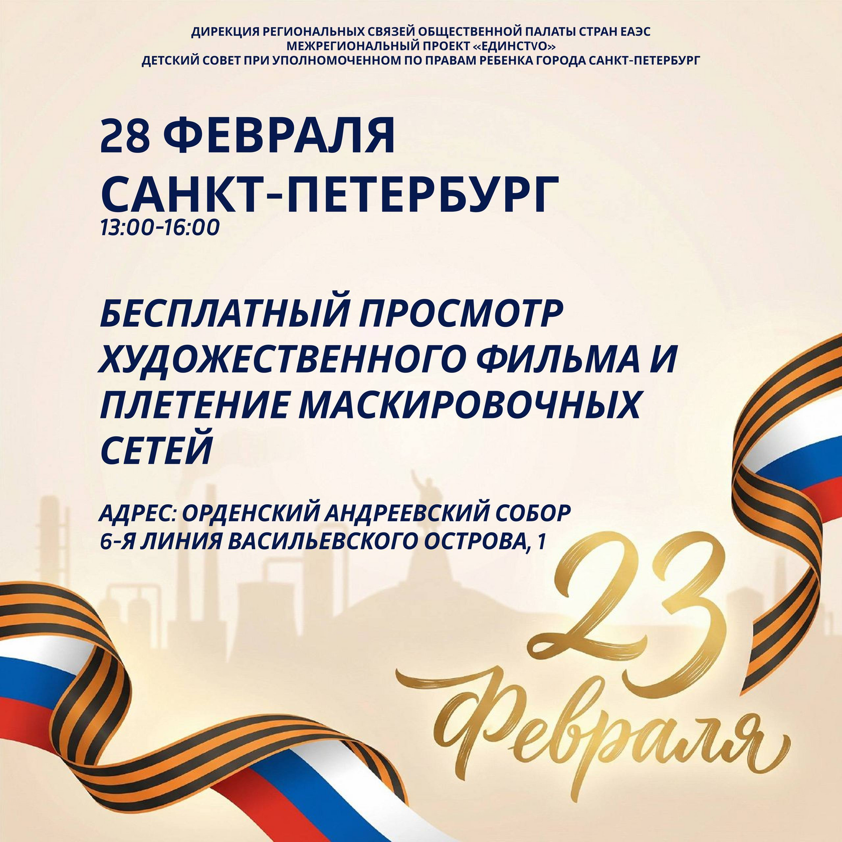 Приглашаем в Санкт-Петербург на кинопоказ и плетение маскировочных сетей в рамках проекта «ЕдинстVo»!